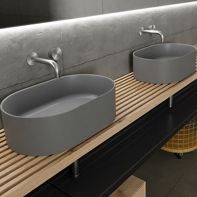 Накладная раковина Galassia CORE/7336GM — элегантная модель размерами 55×36×16 см в сером матовом цвете. Устанавливается на столешницу, создавая эффектный визуальный акцент и добавляя интерьеру лёгкости и современного шарма.