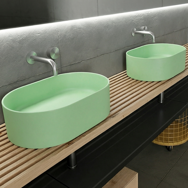 Накладная раковина Galassia CORE/7336SV — элегантная модель размерами 55×36×16 см в цвете матовый шалфей (сальвия). Устанавливается на столешницу, создавая эффектный визуальный акцент и добавляя интерьеру лёгкости и современного шарма.