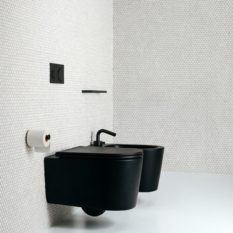 Покрытие чёрный сатин - актуальное решение в современной сантехнике, позволяющее сделать интерьер более выразительным.