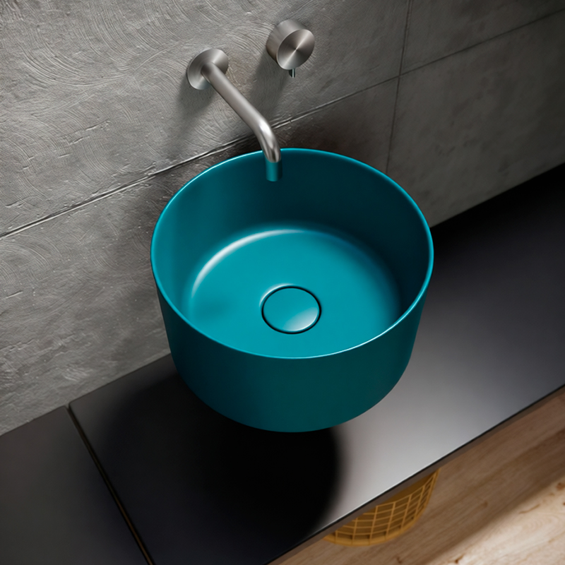 Раковина накладная/подвесная Galassia CORE40/7306PE — универсальная круглая модель диаметром 40 см в трендовом матовом цвете петролио. Гибкость установки — накладной или подвесной монтаж — позволяет адаптировать раковину под любую концепцию ванной комнаты.