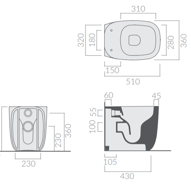 Компактные габариты унитаза 0 51x36x42 см, он органично вписывается как в просторные, так и в небольшие помещения.