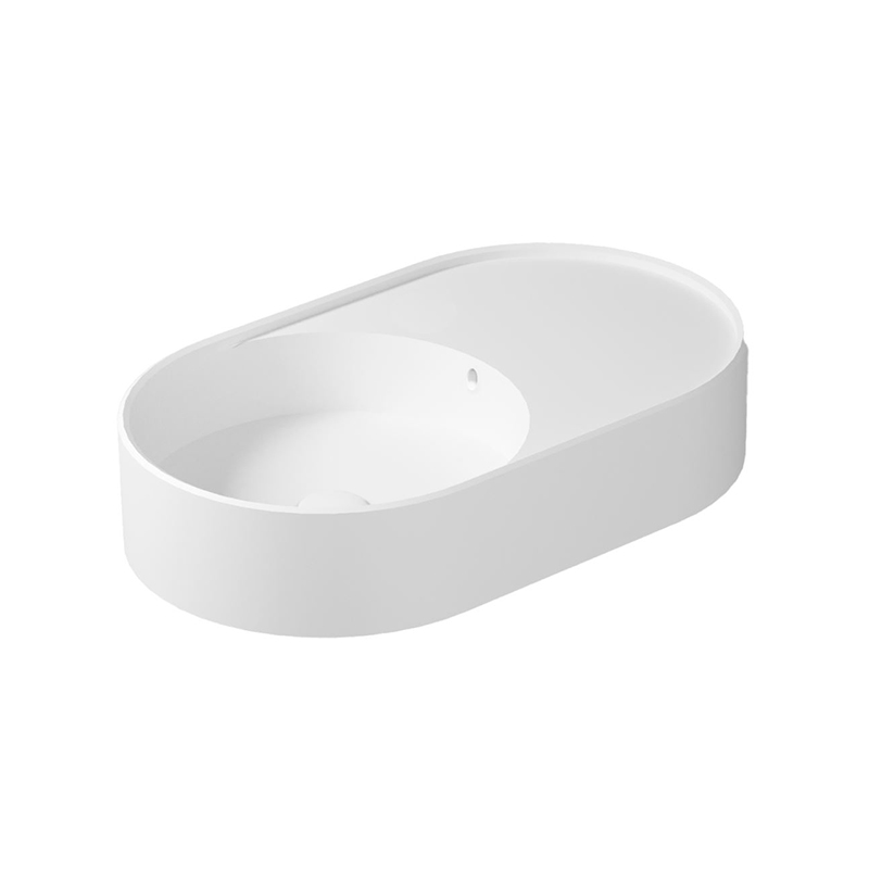 Уникальная реверсивная конструкция позволяет устанавливать раковину в двух направлениях — для максимальной гибкости при проектировании пространства и адаптации под любую планировку ванной комнаты. Плавные овальные формы создают мягкую эстетику, гармонично сочетающуюся с современным и классическим дизайном. Отсутствие отверстия под смеситель открывает свободу для использования настенного смесителя или модели, установленной на столешнице, подчёркивая минималистичный и целостный образ.