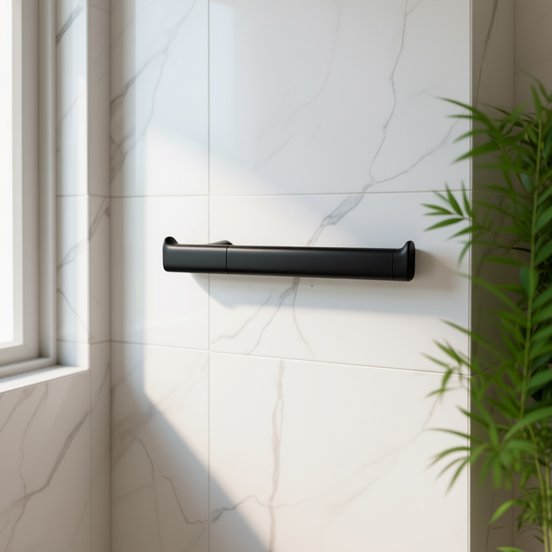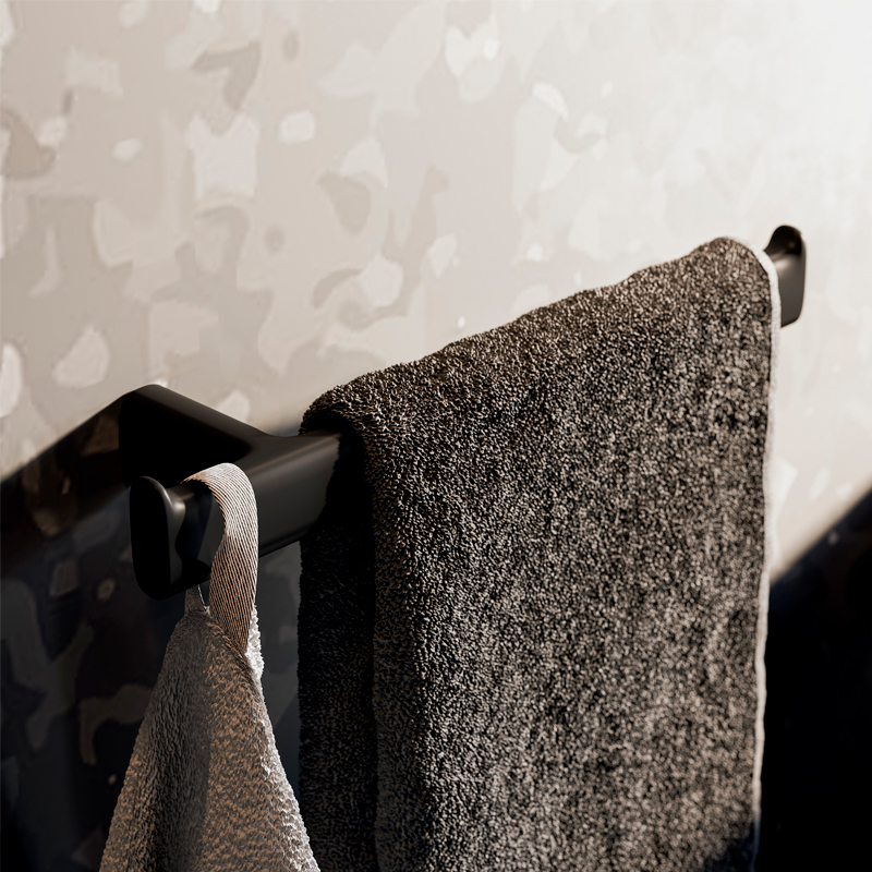 Выполнен в современном стиле, простые линии и черное матовое покрытие придают держателю изящный внешний вид.