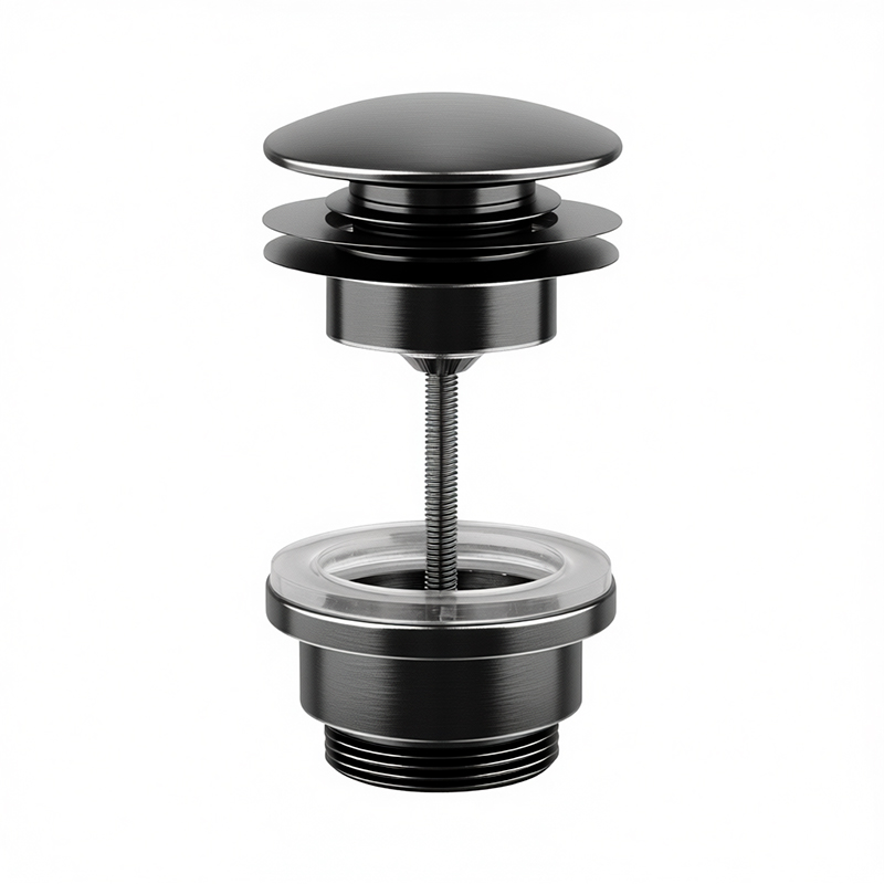 Универсальный донный клапан Plumberia Selection CC4201GM 1"1/4 CLIC-CLAC (Клик-клак), круглый, брашированный хром.