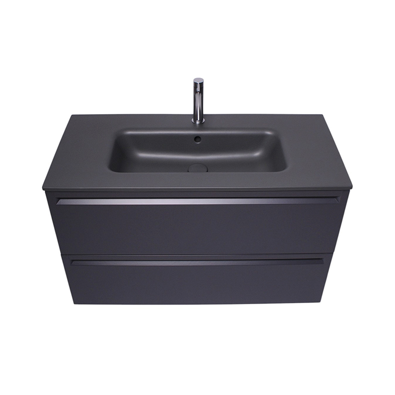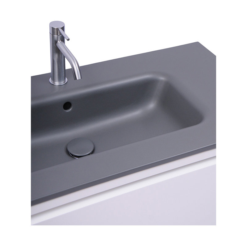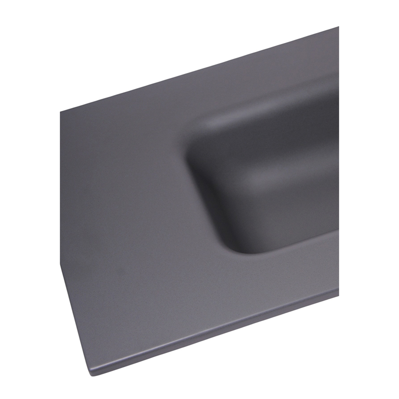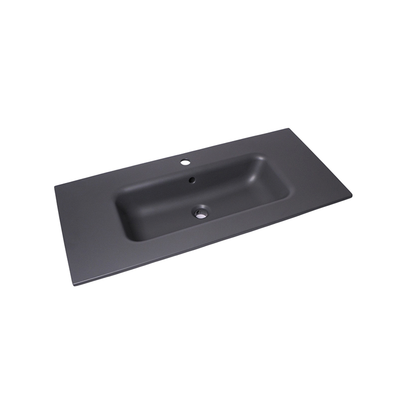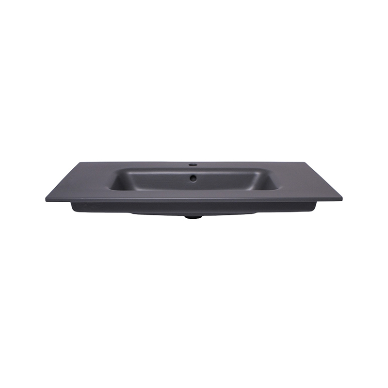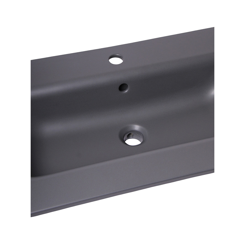 Раковина выполнена из высококачественного фарфора с матовой поверхностью в трендовом оттенке насыщенного серого цвета.