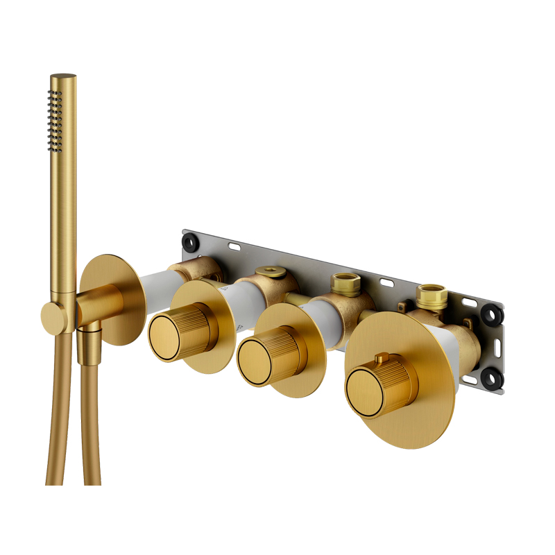 KITXMT1801OR Комплект смесителя ТЕРМОСТАТ на 2 выхода, в комплекте с ручным душем, внутренняя часть XMT001 входит в комплект, золото 24К, Modular IXO, Plumberia Selection