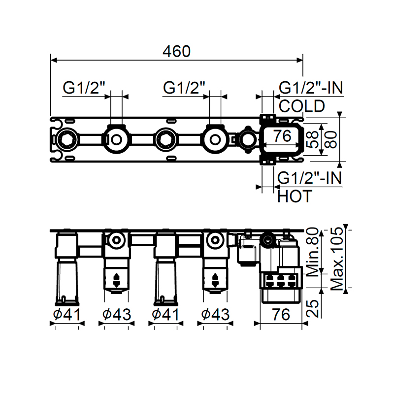 XMT000 Встраиваемая часть смесителя, ТЕРМОСТАТ для арт.XMT1800.., на 2 выхода, расположение горизонтальное, Modular IXO, Plumberia Selection