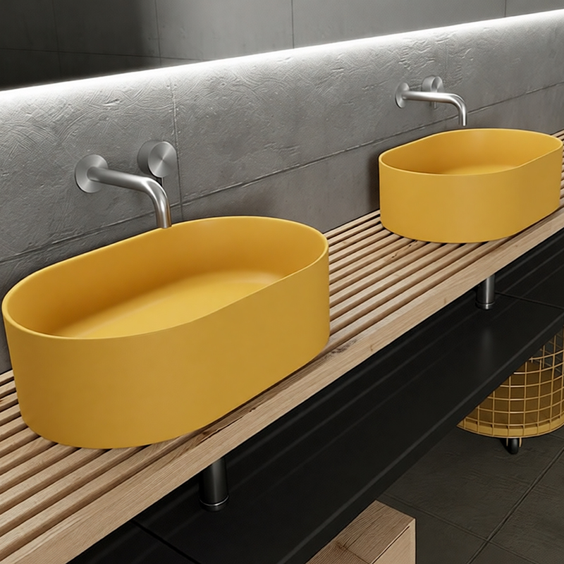 Накладная раковина Galassia CORE/7336OC — элегантная модель размерами 55×36×16 см в жёлтом матовом цвете (охра). Устанавливается на столешницу, создавая эффектный визуальный акцент и добавляя интерьеру лёгкости и современного шарма.
