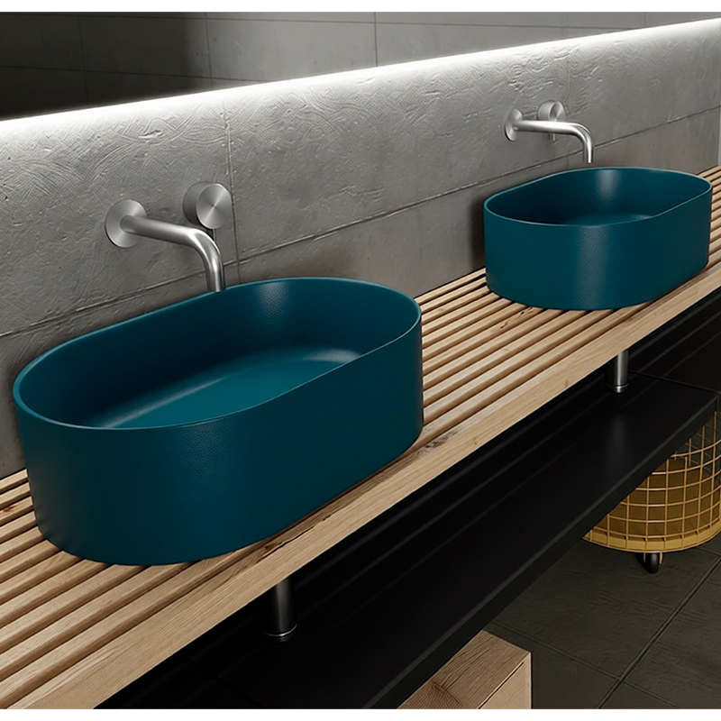 Накладная раковина Galassia CORE/7336PE — элегантная модель размерами 55×36×16 см в цвете петролио. Устанавливается на столешницу, создавая эффектный визуальный акцент и добавляя интерьеру лёгкости и современного шарма.