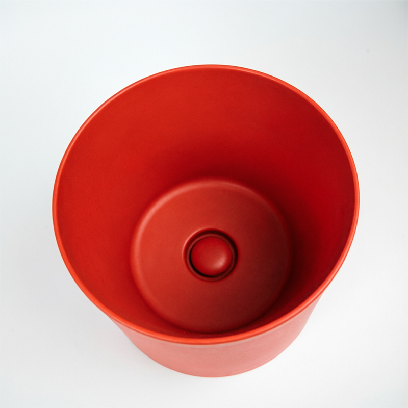 Раковина Galassia CORE46/7305RO — лаконичная круглая модель диаметром 37 см и общей высотой 46 см в современном красном исполнении, сифон и донный клапан click-clack в комплекте.