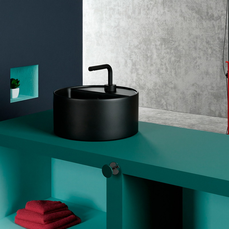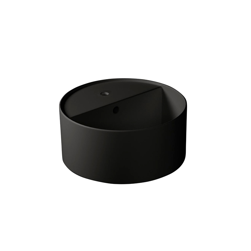 Универсальный тип установки: может монтироваться как накладная на тумбу/консоль или как подвесная на прочных металлических кронштейнах (в комплект не входят). Круглая форма, диаметр чаши — 45 см, оптимальная глубина предотвращает разбрызгивание воды. Предварительно выполненное технологическое отверстие стандартного диаметра для удобной установки смесителя на саму раковину. Покрытие черный сатин подчеркнёт характер интерьера. Подходит как для дизайна квартир, так и для оснащения гостиниц, офисов или загородных домов.