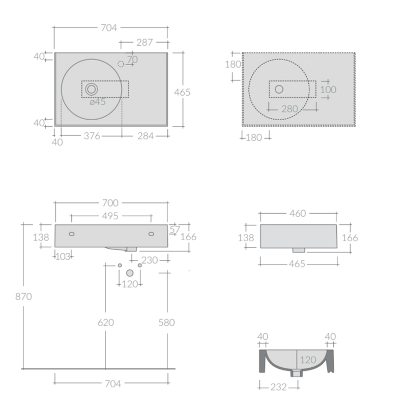 Идеальная геометрия, премиальное качество итальянского бренда и возможность установки двумя способами: подвесным или накладным на тумбу/столешницу — для гибкости в реализации дизайнерских решений. Отсутствие отверстия под смеситель обеспечивает чистые линии и минималистичный вид.