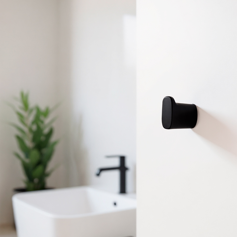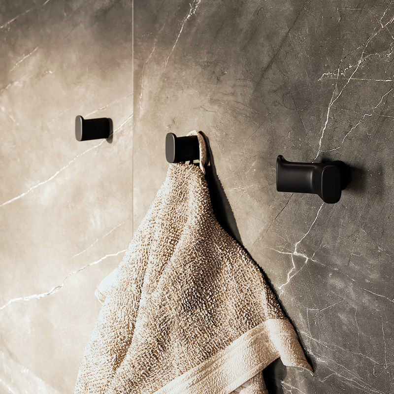Выполнен в современном стиле, простые линии и черное матовое покрытие придают крючку изящный внешний вид.