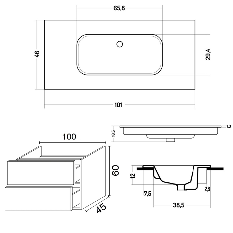 | Ширина умывальника | 101 | |