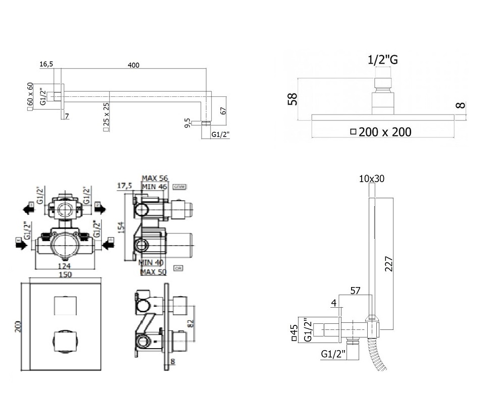 • LEQ518CR/M Смеситель термостат встраиваемый для душа 2 вых., 150х200мм LEVEL Paffoni