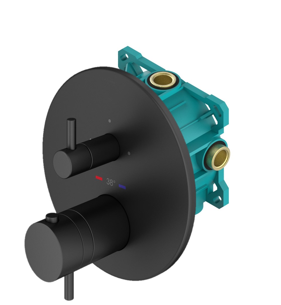 Комплект KITPSС1802NO для душа, со встраиваемым коаксиальныи термостатическим смесителем для душа на 2 выхода PSB1802NO, с внутренней частью PSB003, накладка нержавеющая сталь d.160мм, верхний душ 250мм, ручной душ, черн.матов.PSBOX, Plumberia Selection