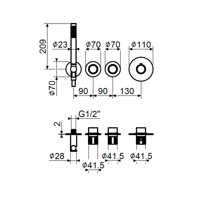 XMT1801CR Внешняя часть смесителя ТЕРМОСТАТ на 2 выхода, в комплекте с ручным душем, для использования только с арт. XMT001, хром, Modular IXO, Plumberia Selection