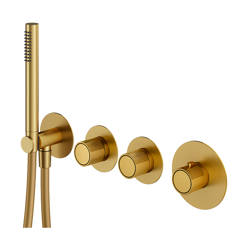 XMT1801OB Внешняя часть смесителя ТЕРМОСТАТ на 2 выхода, в комплекте с ручным душем для использования только с арт. XMT001, браш.золото, Modular IXO, Plumberia Selection